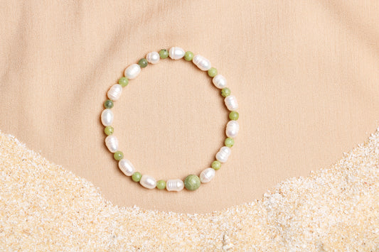 Oceanistone Freshwater Pearl and Jade Bracelet with Sterling Silver Clasp