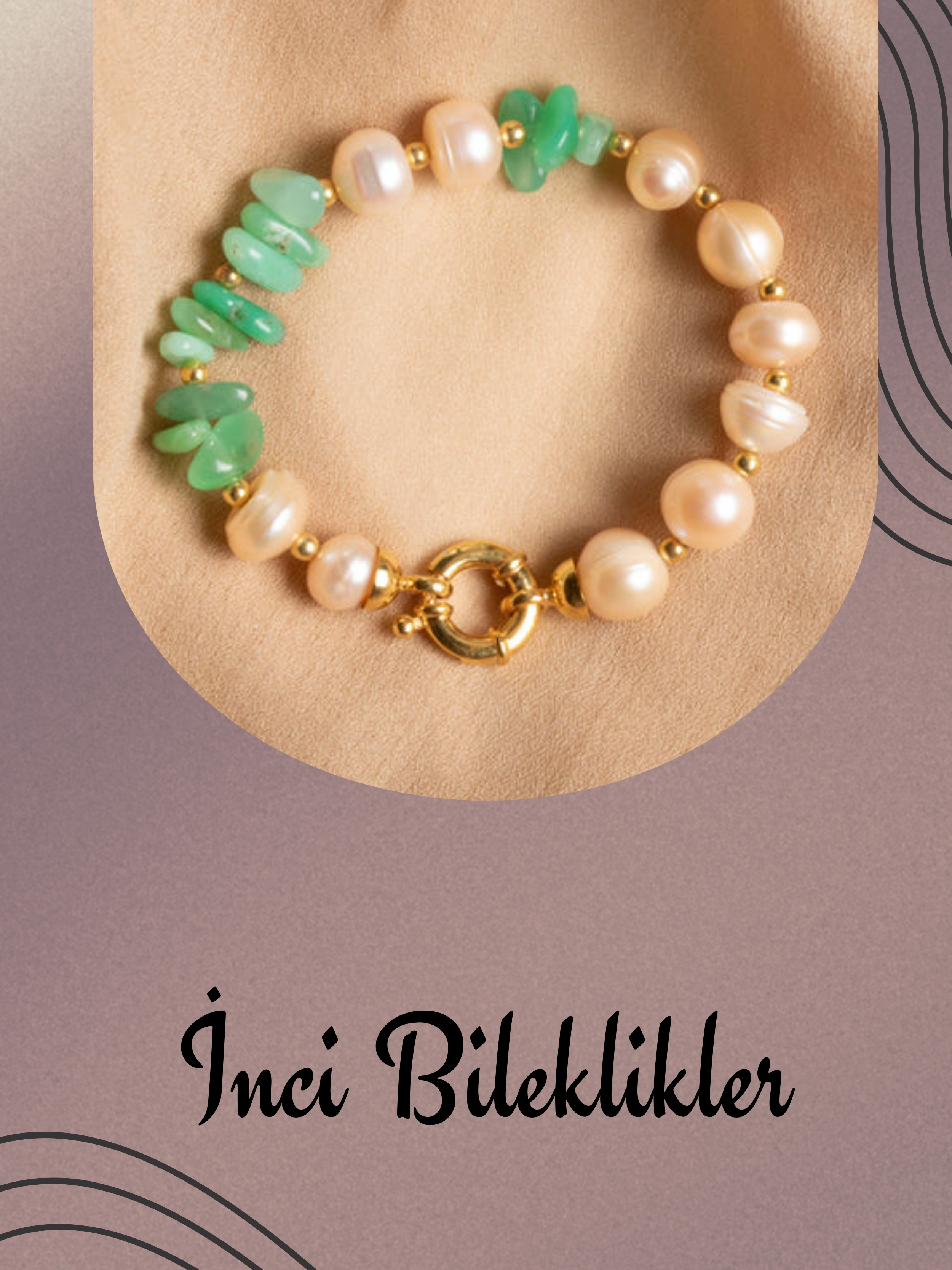 - Pearls, symbolizing elegance and grace, have been a staple in jewelry design for years. With its lustrous surface and unique tones, pearls add a sophisticated touch to every design. Natural stones, with their diverse colors and distinctive patterns, stand out in each piece, bringing a different dimension to our creations. Both their energies and aesthetic appearances contribute to the allure of our designs.
