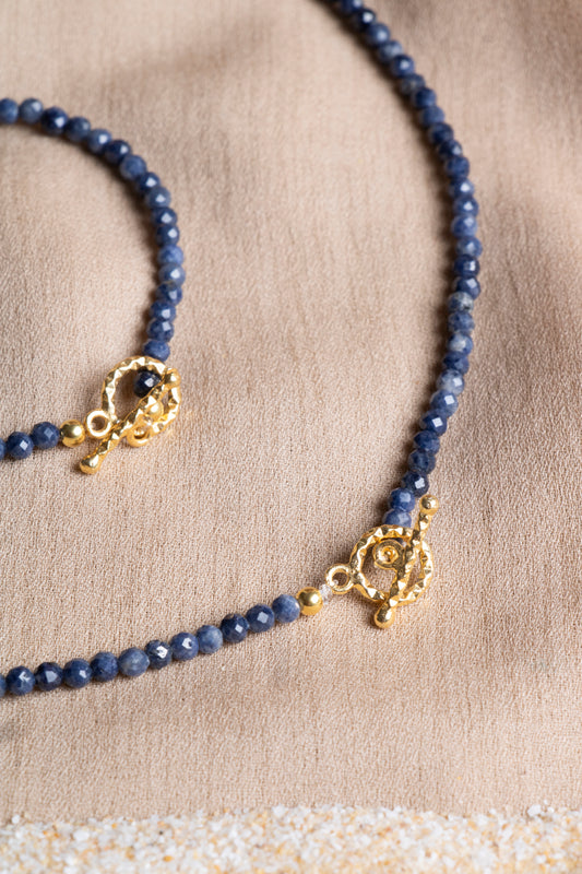 Oceanistone Sapphire natural stone necklace and bracelet set